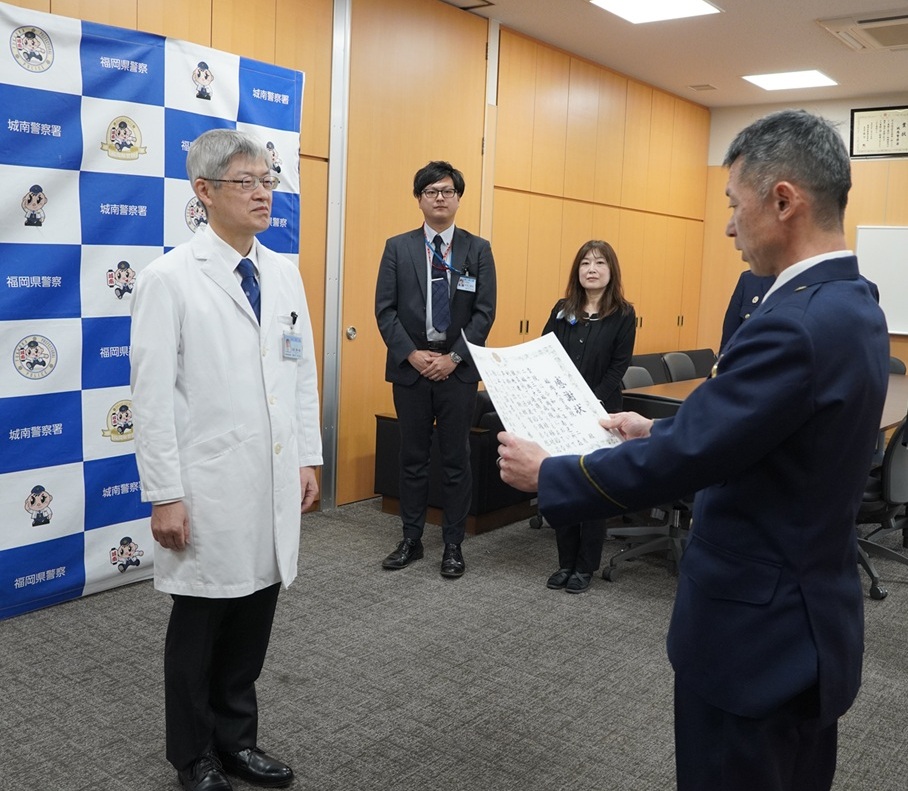 2月16日(月)に福岡県城南警察署から、院内ATMにおいて特殊詐欺被害を未然に防止したとして福岡大学病院へ感謝状が贈られました。